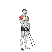 Stand with your feet shoulder-width apart and hold the band in front of your thighs with your palms facing inwards.