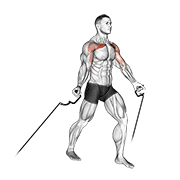 Grasp the handles with an overhand grip and extend your arms out to the sides, keeping a slight bend in your elbows.