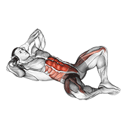 Engaging your abs, lift your upper body off the ground, curling forward until your torso is at a 45-degree angle.