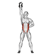Hold a kettlebell in your right hand, with your arm extended overhead and your palm facing forward.