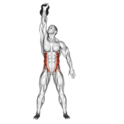 Bend your torso to the left side, keeping your right arm extended overhead and your eyes on the kettlebell.